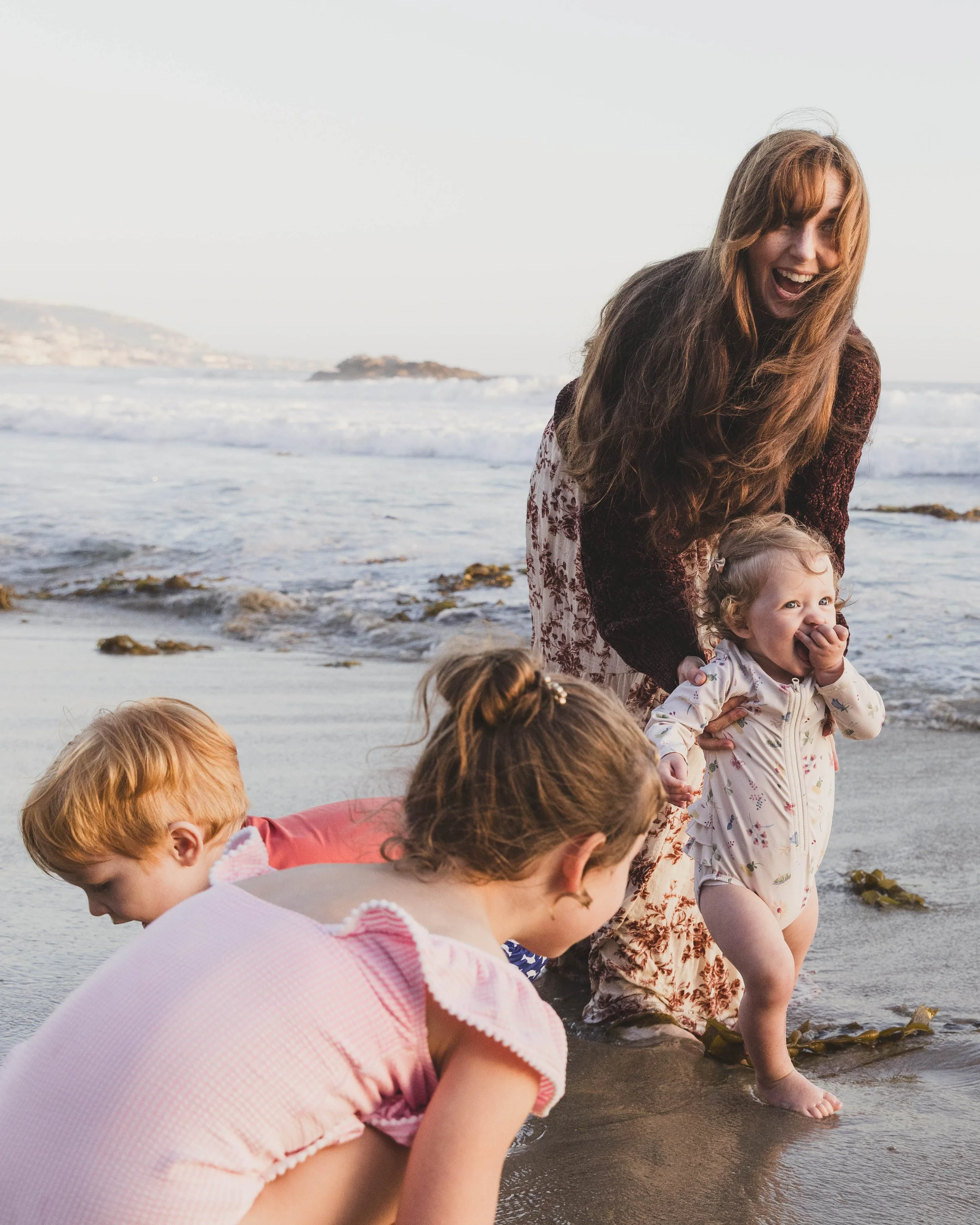 So, we shifted gears. Instead of the secret pool, we headed to one of Laguna’s more accessible family beaches—Heisler park, a lively spot that still offers small tide pools, a grassy hill to play, and plenty of soft sand for barefoot exploring. It was busier than our original location, but it had a charm of its own. The children ran down the beach chasing birds, exploring tiny tide pools filled with snails and crabs, and laughing every time the waves caught their toes.